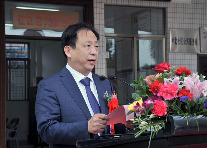 平北社区党支部书记、居委会主任李良金致辞,他在致辞中回顾了改革开放以来,在党支部、居委会的领导下,平北社区的经济发展和绝大多数人民的生活水平都出现了质的飞跃,平北社区的村容村貌也发生了翻天覆地地变化,取得的成功,离不开各级党政的大力支持,更离不开内外乡贤、企业家的慷慨解囊,他代表社区党支部居委会向长期乐心施善支持家乡发展事业和扶贫济困的社会各界爱心人士表示衷心感谢和崇高敬意。