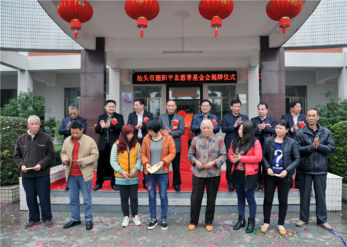 2016年2月12日,“汕头市潮阳平北慈善基金会”在潮阳平北居委会举行揭牌仪式。汕头市政协主席郭大钦,汕头市人大常委会副主任黄俊潮,汕头市民政局局长陈镇坤,汕头市社会组织管理局局长刘勤裕,中共潮阳区委书记、区人大常委会主任陈新造书记,潮阳区人大常委会副主任庄儒忠,潮阳区政府副区长张国春,广东华盛投资集团有限公司董事长郑继坤,潮阳实验学校董事长郑立平,深圳市华嵘投资集团有限公司董事长黄振良,驻潮、区直有关部门主要领导,棉北街道有关领导和部门负责人,棉北街道各社区书记、平北社区两委干部以及特邀嘉宾出席了当天的揭牌仪式。棉北办事处刘容主任主持了基金会成立揭牌仪式。